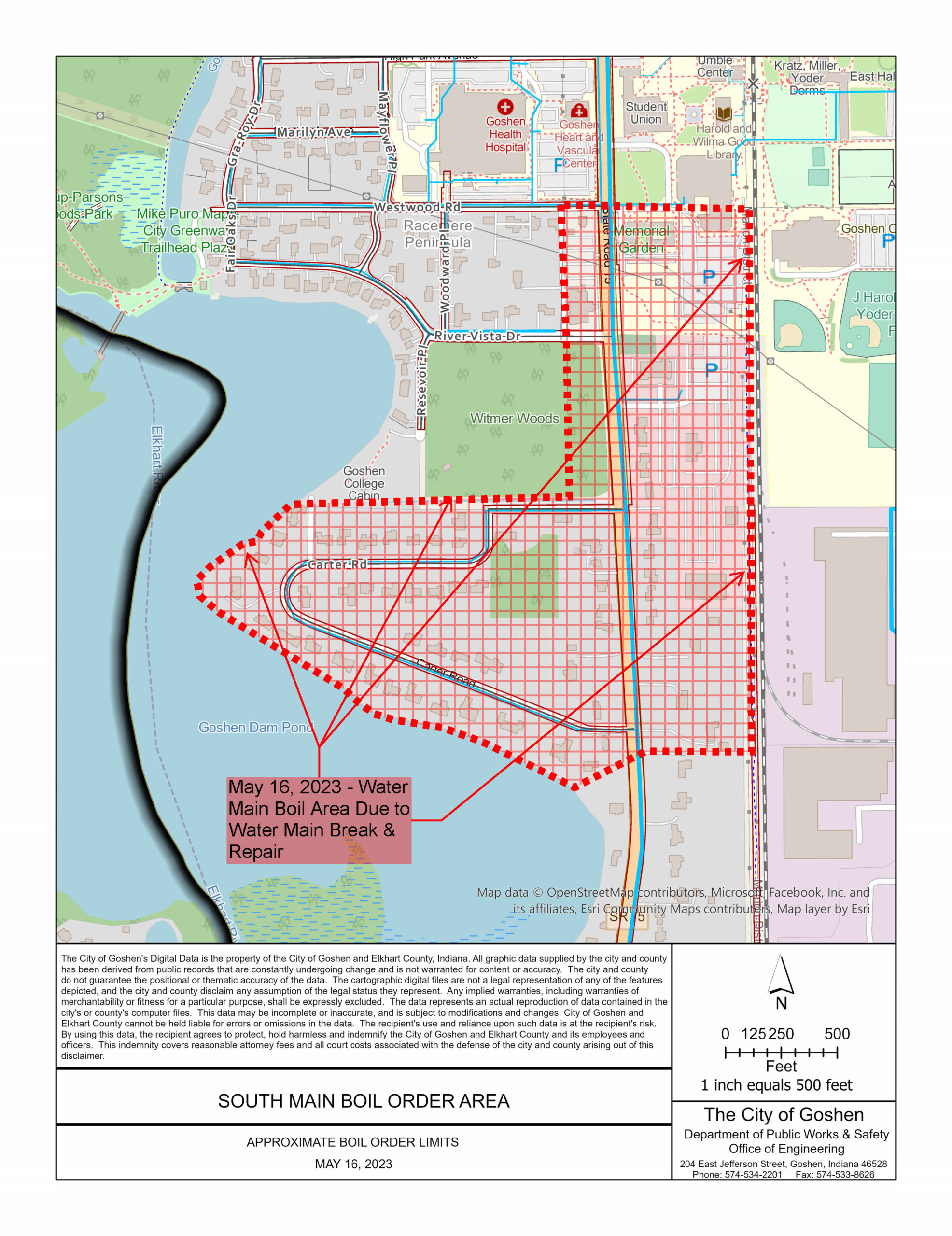 Thank you for your patience and for the water conservation measures you followed. If you have any questions, please get in touch with the Water & Sewer Department at 574-534-5306.