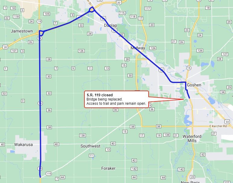 The Indiana Department of Transportation announces the closure of State Road 119 between State Road 19 and State Road 15.