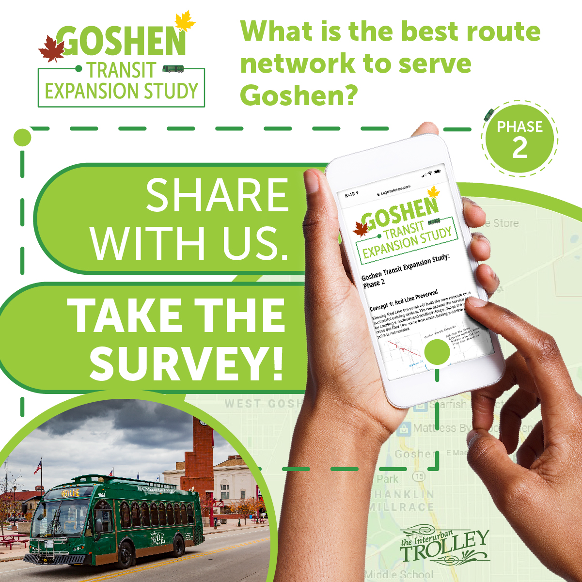 The interactive survey is available at goshentransit.interurbantrolley.com/ through March 27, 2021. Paper surveys will also be available at City Hall and the Goshen Public Library. For more information, contact MACOG at 574-287-1829 ext. 888 or by email at goshentransit@macog.com.