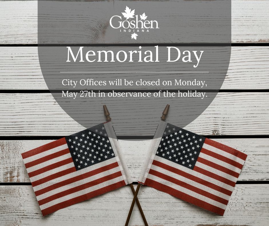 All City Offices will be closed on Monday, May 27 in observance of the Memorial Day Holiday.