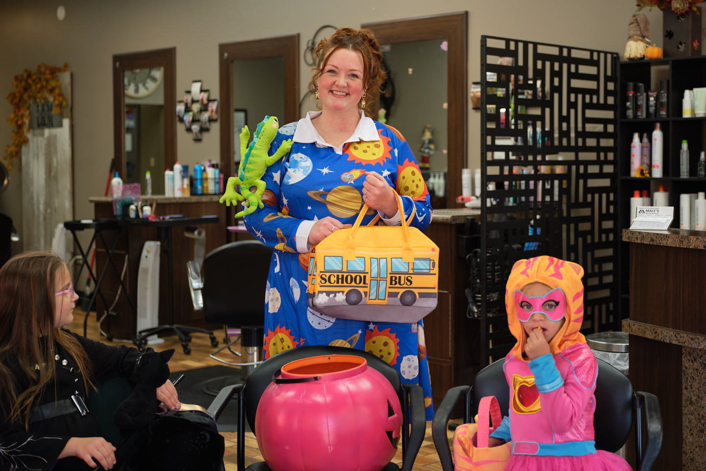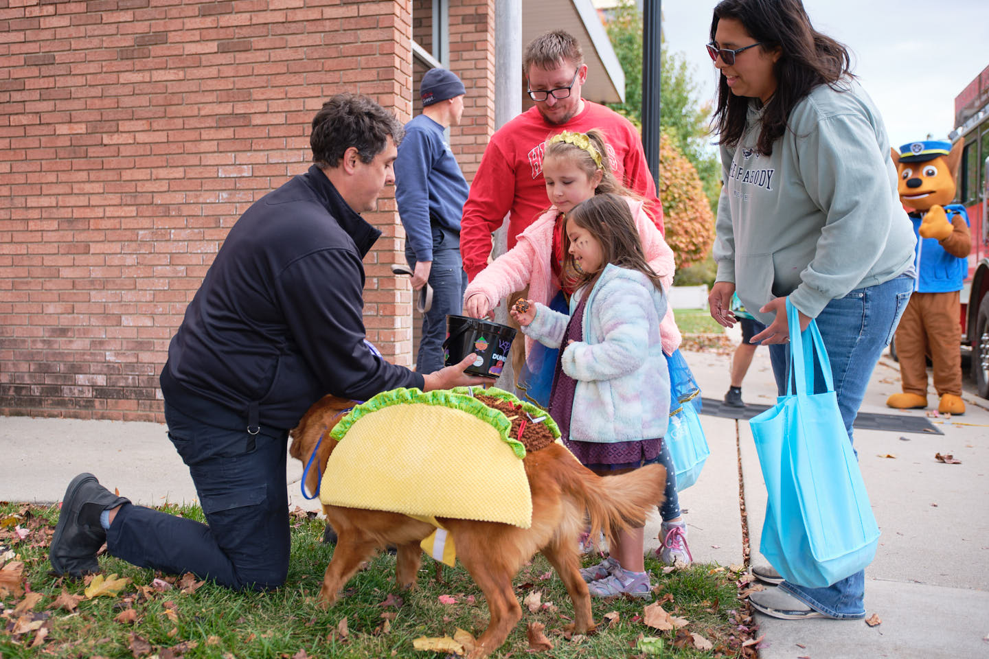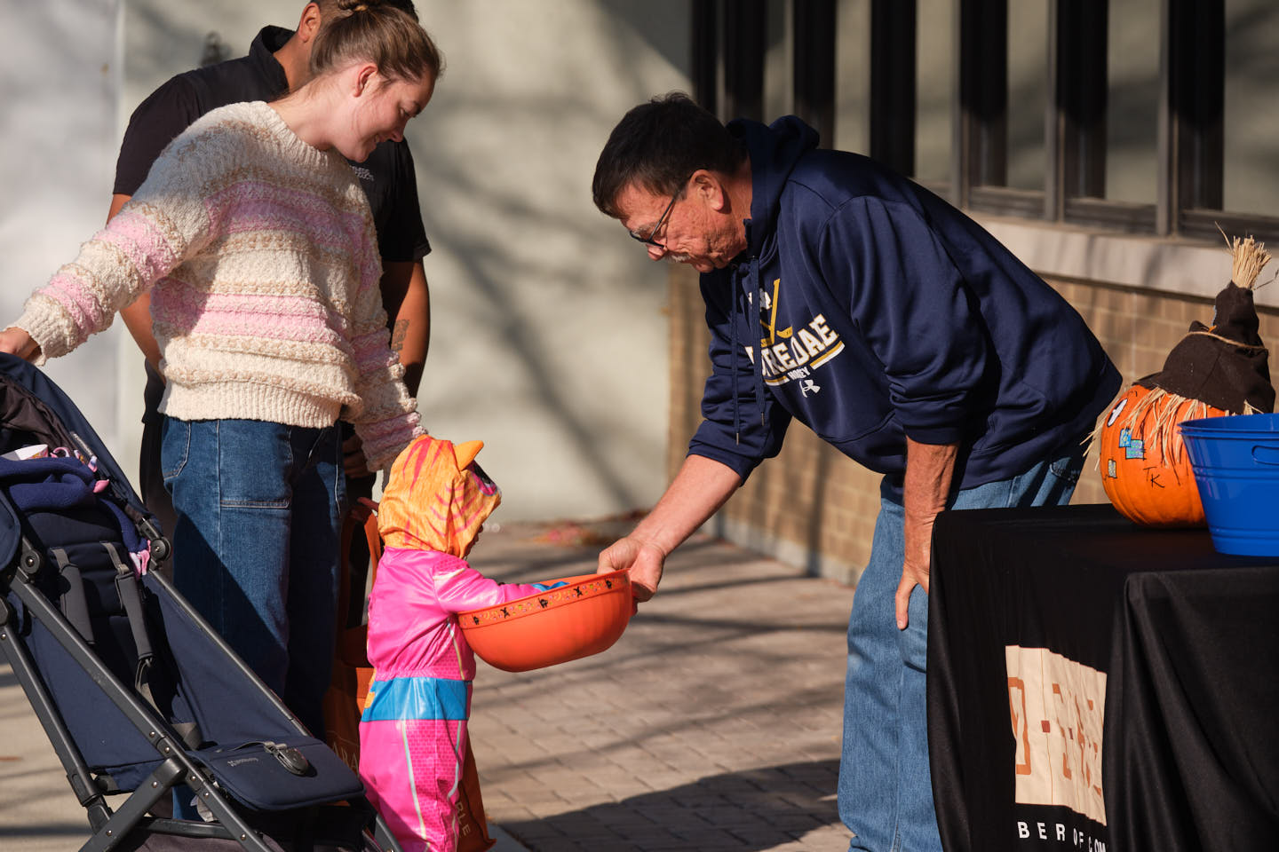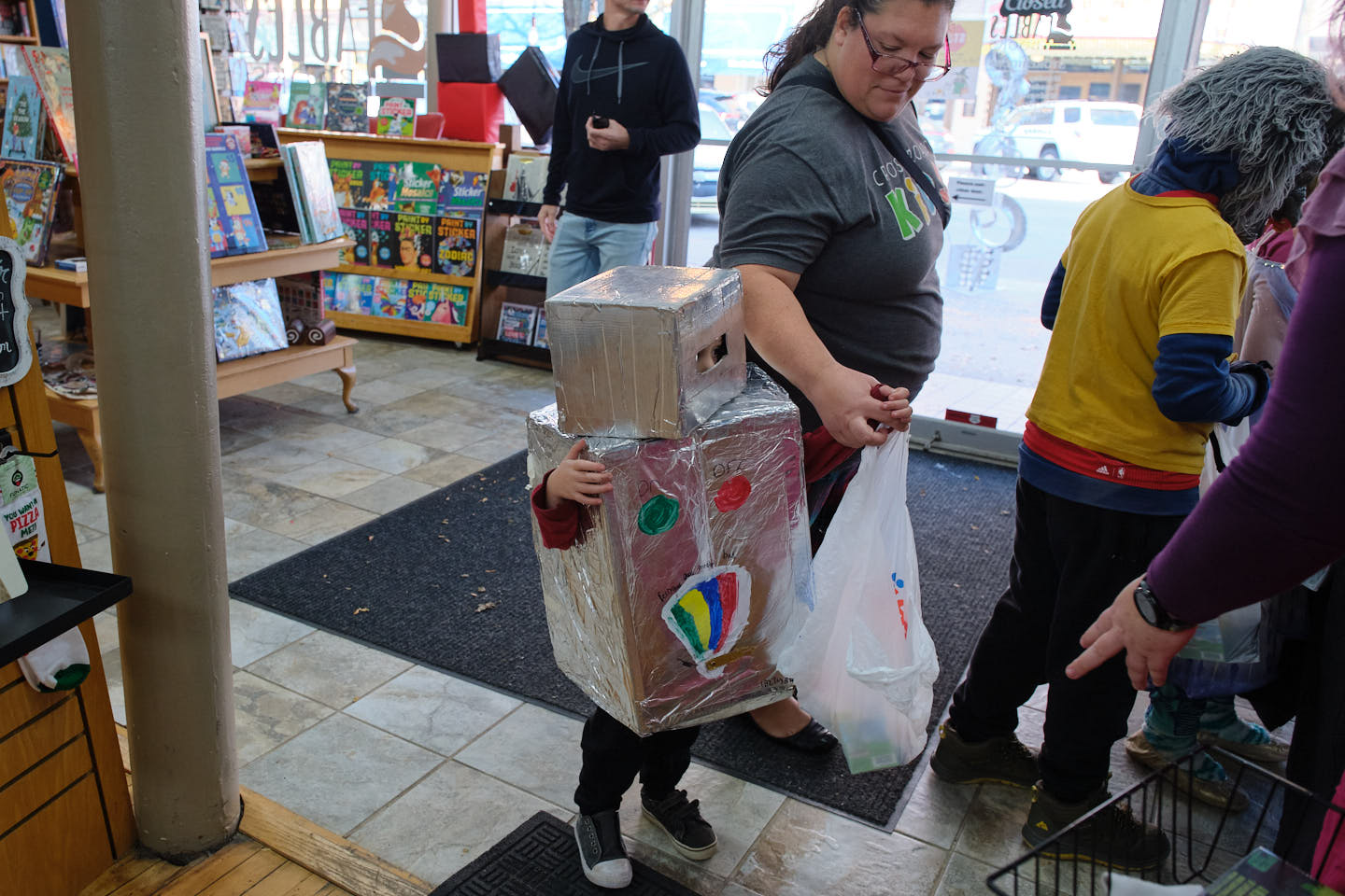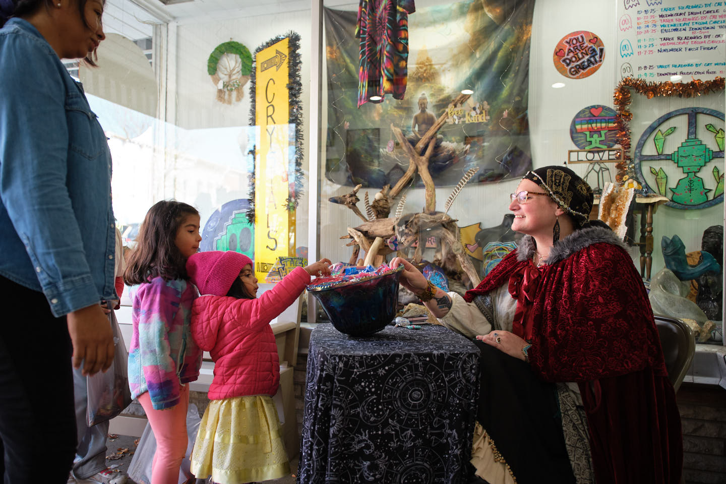 Mayor Gina Leichty greeted young trick-or-treaters at her office in the Old Carnegie Library, one more stop in a downtown tradition built on fun and community.
