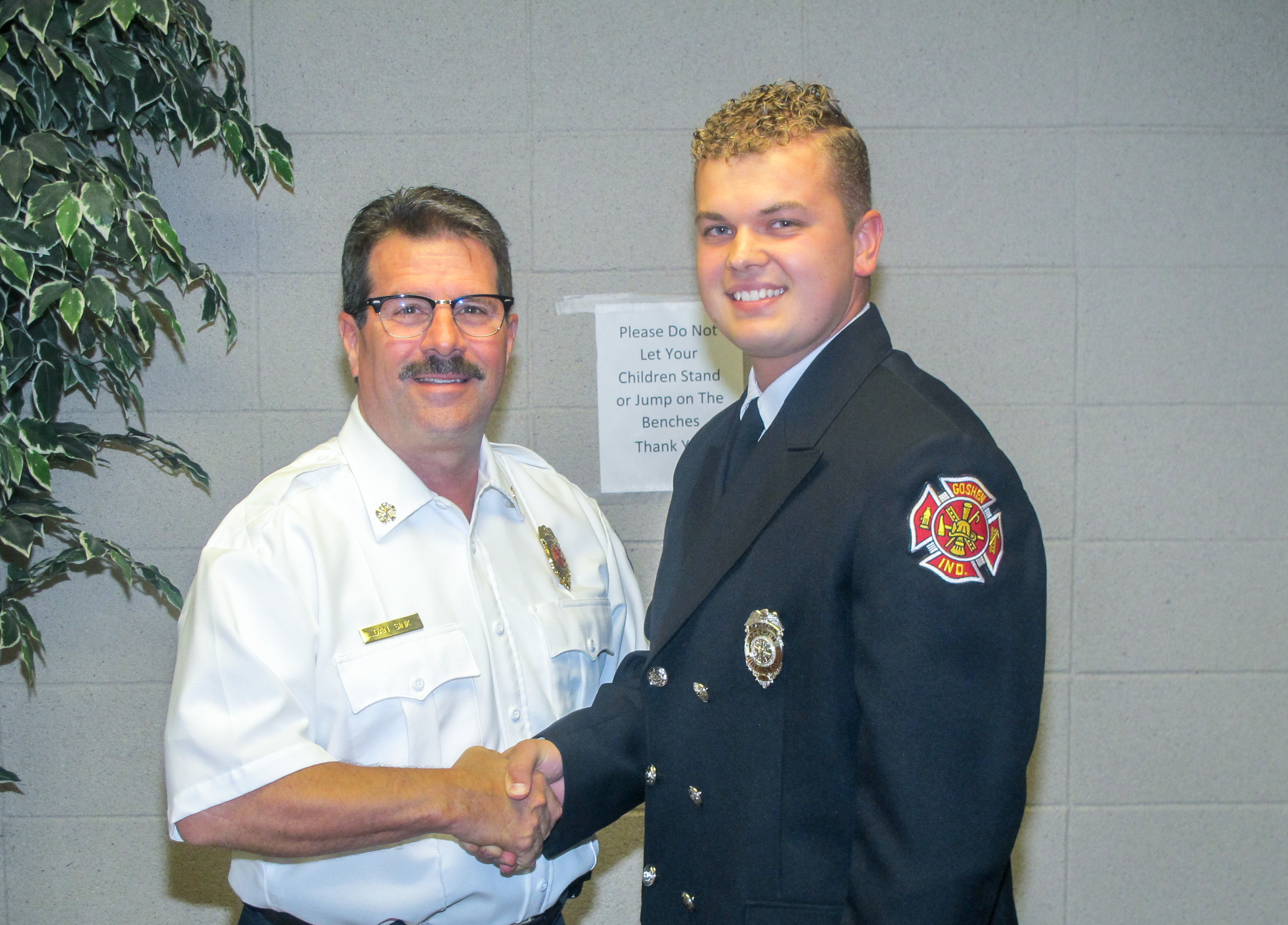 Congratulations to Private First Class Winston Lechlitner, who completed his probationary year at the Goshen Fire Department. His promotion ceremony was today at the Board of Work meeting.