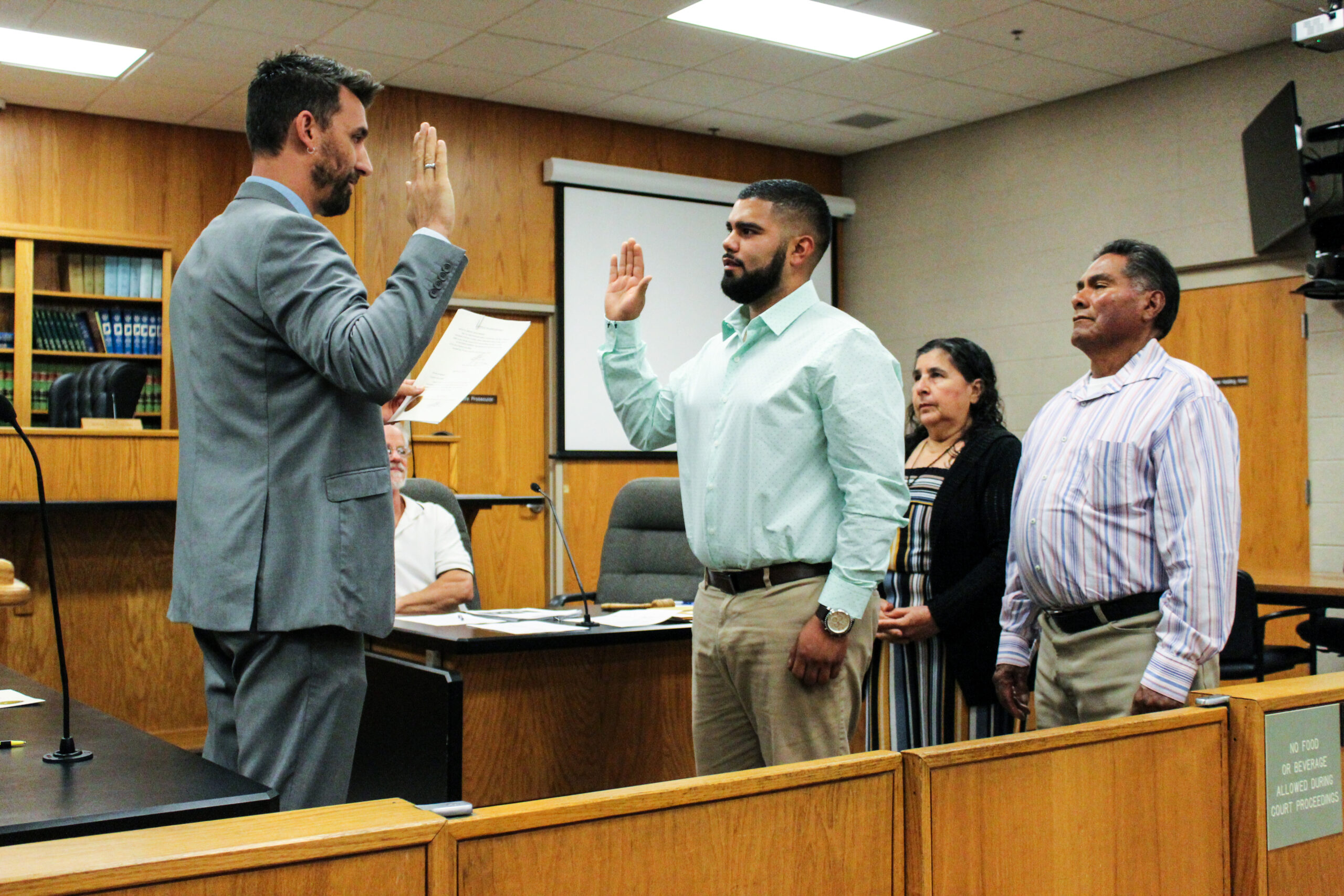 Patrol Officer Ronnie Yoder was promoted to the rank of Detective. Probationary Patrol Officers Andrew Keim, Drew Wilson and Austin Evarage were promoted to Patrol Officers. And Jorden Beck, Gerardo Mejia, Manuel Torres, and Zachary Bechtel were hired as Goshen Police Reserve Patrol Officers.