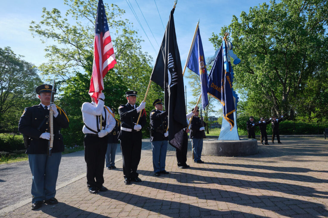 The morning began with a quiet service at Powerhouse Park, where attendees gathered along the Elkhart River to reflect and remember. Community members then walked to the Courthouse lawn for a short ceremony before lining the sidewalks downtown for the parade.