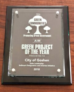 Goshen earned the Gold level certification from SolSmart, making us the 40th community in the United States to earn this honor.  We soon after started our Solarize process to help get the best pricing possible for solar installations.  (Solarize was a joint process between Napannee, South Bend, and Goshen).