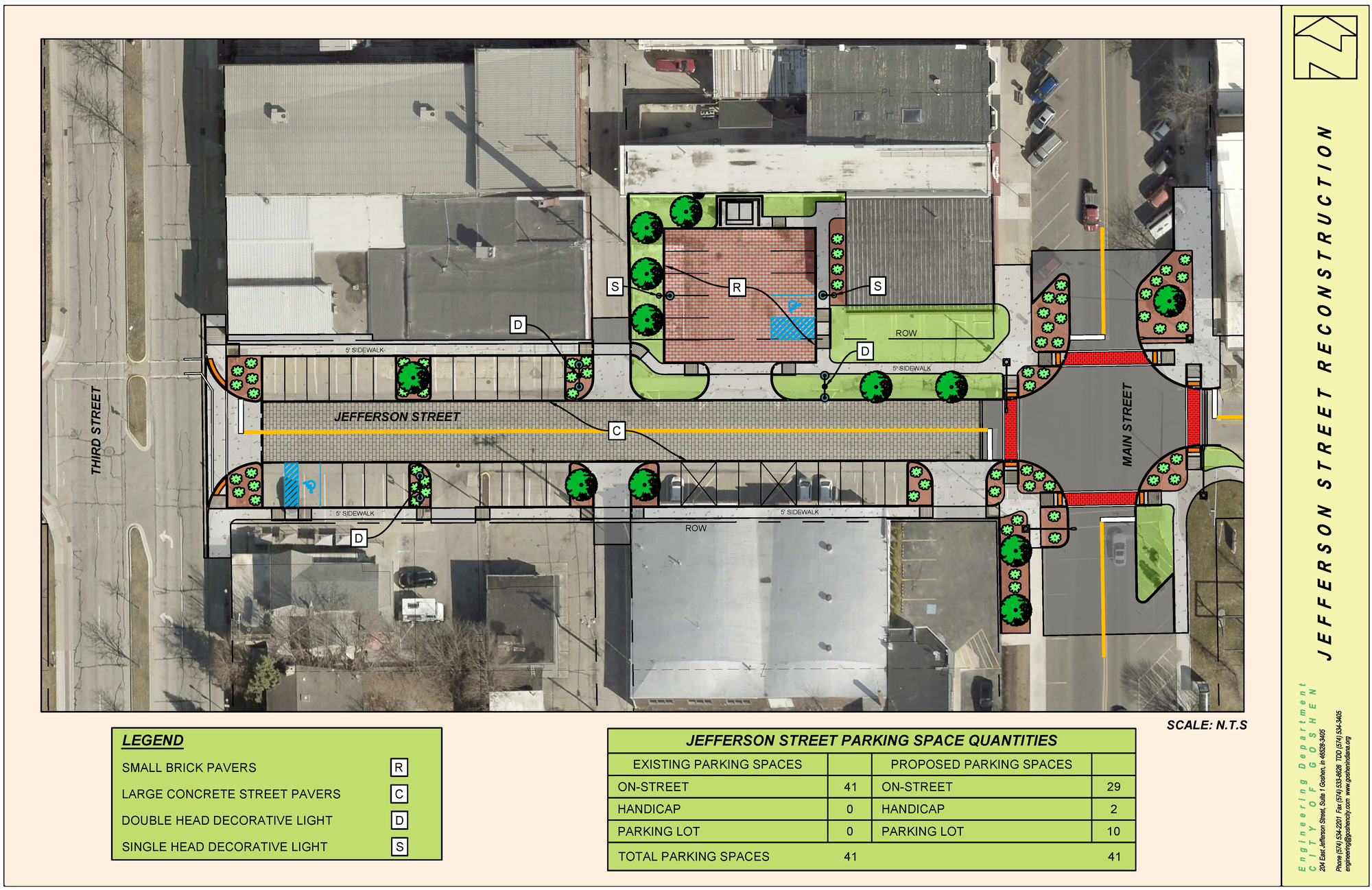 The City of Goshen is currently designing the reconstruction of Jefferson Street between Main Street and Third Street. For a concept idea, see the drawing below.