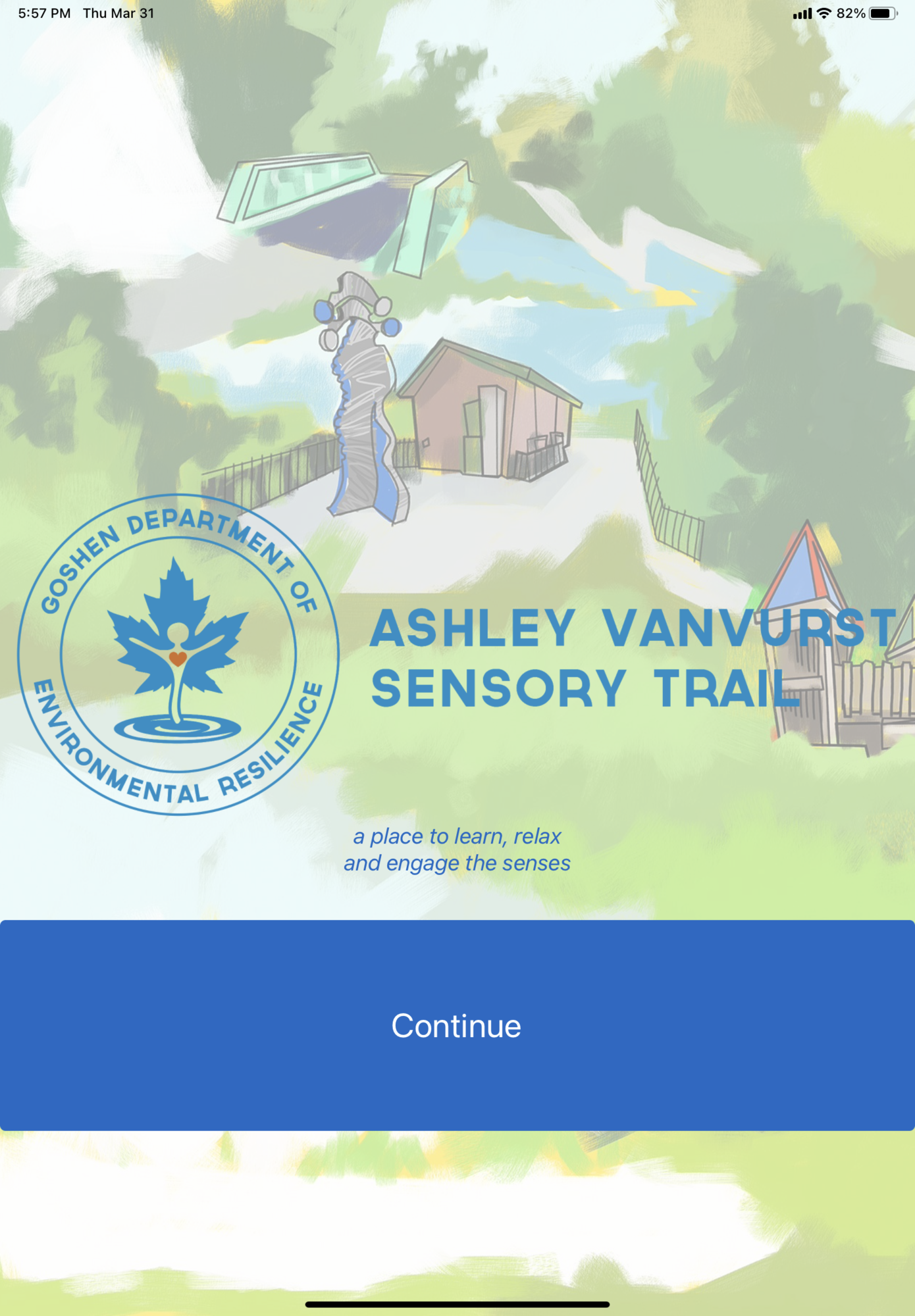Welcome to the Ashley VanVurst Sensory Trail Sensory Trail App (“Sensory Trail App”) brought to you by the City of Goshen, Indiana, (“City”). The Sensory Trail App will provide a guided sensory experience that will assist users to learn, relax and engage the senses through touching, smelling, seeing, hearing, and tasting the world around them while enjoying the four miles of public trails with natural habitats.