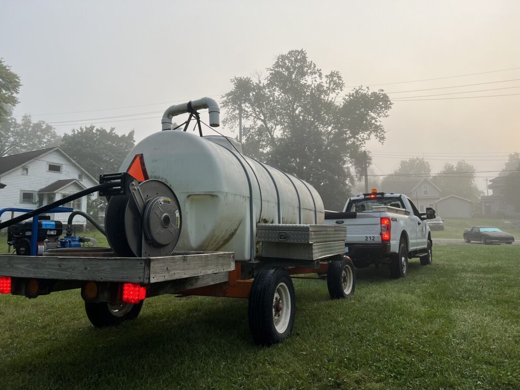 We started our day at 8am, as Roger met Stan and I with a city truck and a full tank – roughly 1,000 gallons of water – to get going for the morning. Throughout our time together, Stan and I filled up the bags of 50-60 trees, filling them with 20 gallons each to get through the week. The route for the day took us to the northwest of Goshen, down Greene Rd. and back through Black Squirrel Golf Club. Along the way, Roger and Stan kept tabs on the health of the trees, chatted up residents, and caught up with each other. We ended the morning with less than 100 gallons of water left in the tank, as Stan and Roger prepared to go about the rest of their days. With only two more weeks in the watering season, the city is on track to distribute over 30,000 gallons of water to public trees throughout the summer. Because of the contributions of all of the volunteers, many newly planted trees throughout the city are thriving, providing all sorts of benefits and beautifying the city.