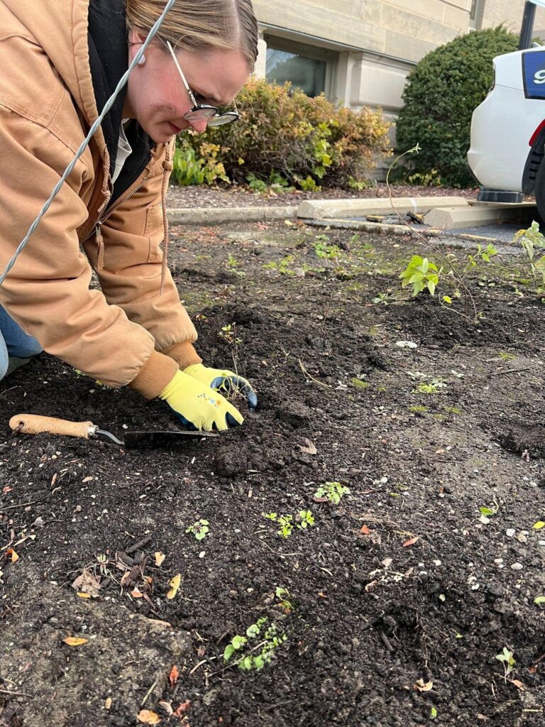 The four of us spent about an hour and a half digging holes, planning where to plant, and settling the plants into their new homes. Presently, the area looks fairly dead since many plants weren’t happy in their potted homes. However, come springtime, it should bounce back to life and bloom into a multitude of colors. The City is considering adding a bench to the space as well, which would be a nice resting place along 5th Street or a pleasant lunch spot for employees working in City Hall.