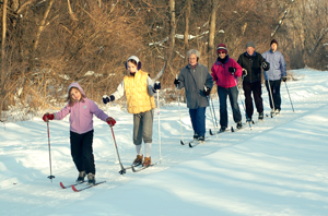Cross-country skis are available to rent at the Goshen Parks & Recreation Office, 524 East Jackson Street. Neither Abshire Cabin nor the tubing hill is staffed. Season begins in December and ends in late March (when there is sufficient snow cover).