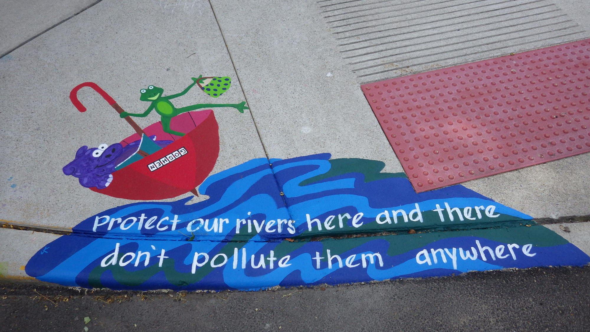 Playing off of one of my favorite children’s book authors Dr Seuss, I wrote the slogan “protect our rivers here and there don’t pollute them anywhere,” as a reminder that not only do we need to protect our rivers starting at the rivers themselves but also at our storm drains. We need to be aware of what we place in our waterways can harm everything that lives in or around them.