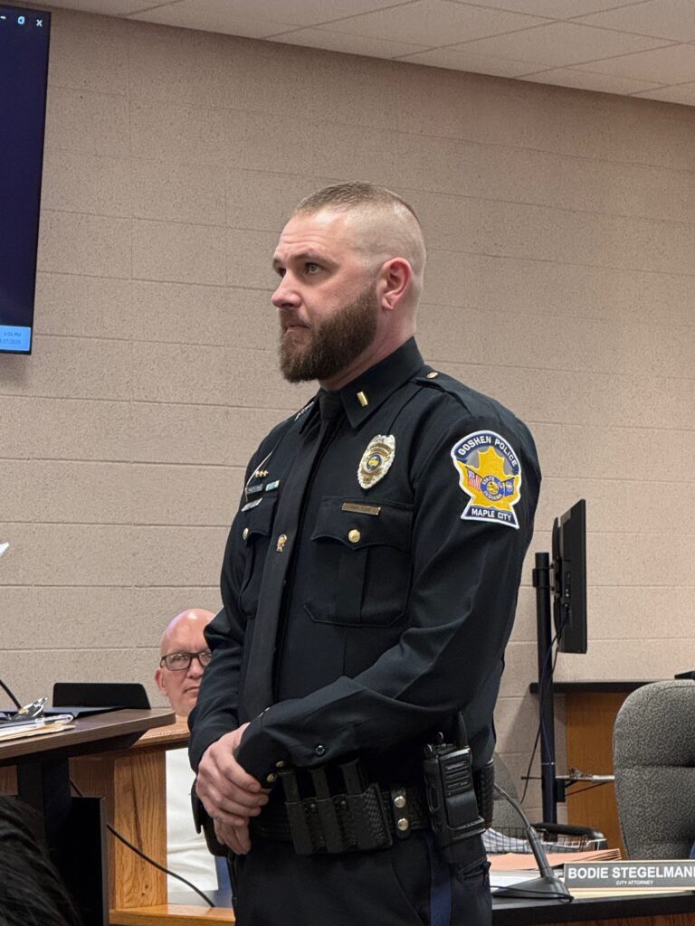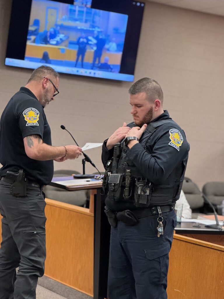 Captain Austin Everage, Lieutenant Mark Clere, and Officer Kyle Priem each received the Goshen Police Department’s Life Saving Award during the March 27 meeting.