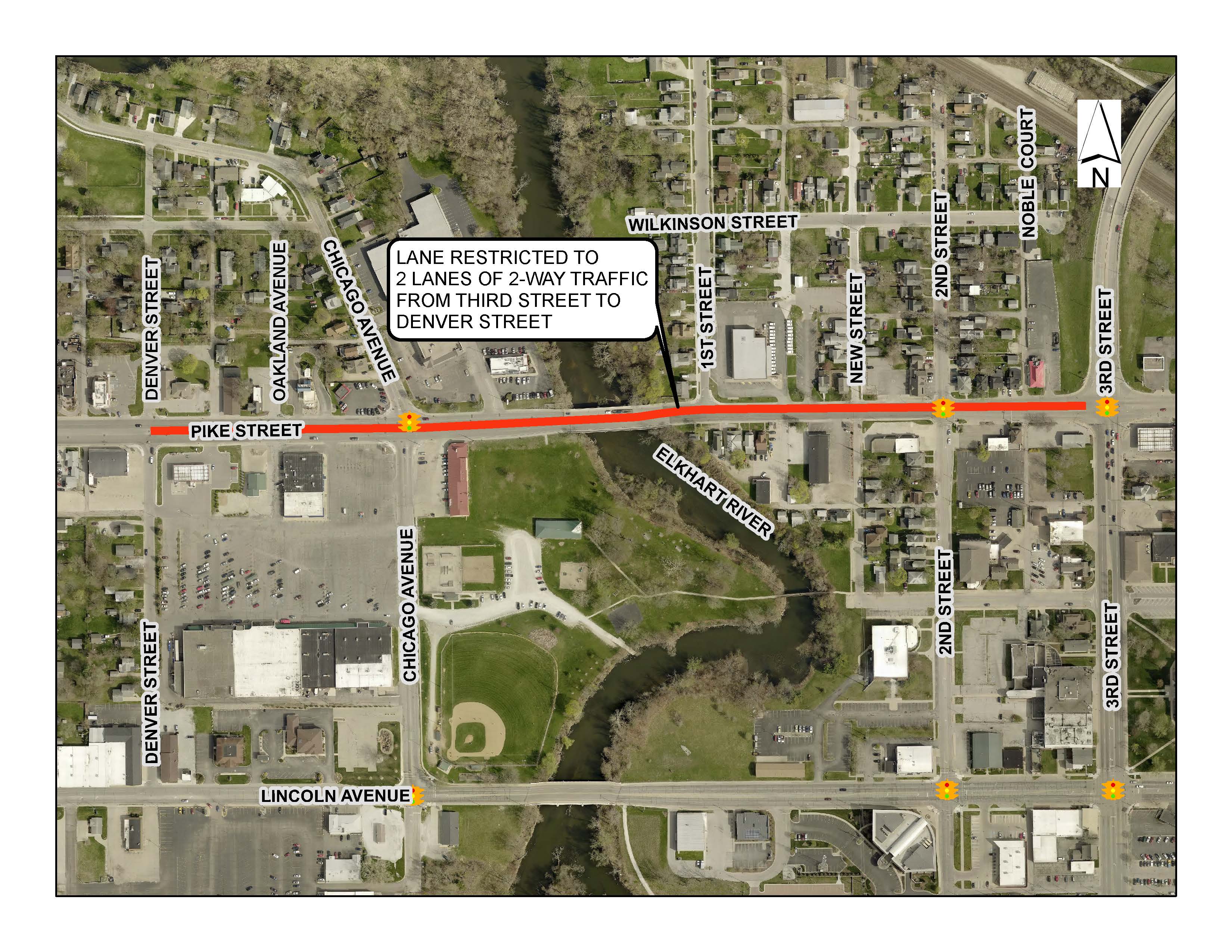 The City of Goshen Water Department’s water main river crossing project at Pike Street is starting. The City’s Contractor, HRP Construction, will be setting up traffic control on Pike Street beginning Thursday, Oct. 20.