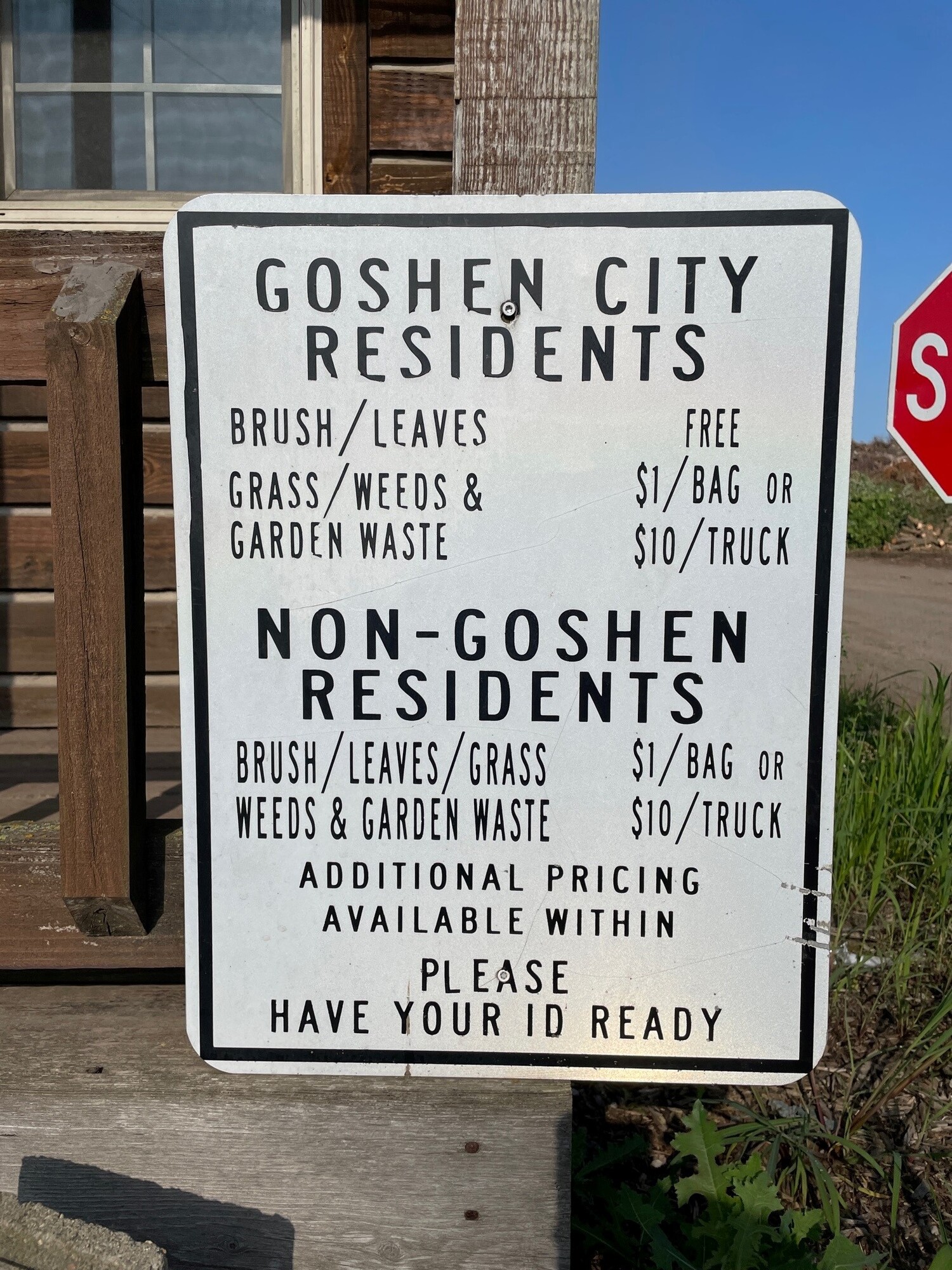 A valid ID with a Goshen address is required to confirm residency. Additional yard waste, such as grass clippings, flowers, garden vegetables, shrubs, branches, and seasonal items like straw or holiday greenery, can be dropped off for a small fee.