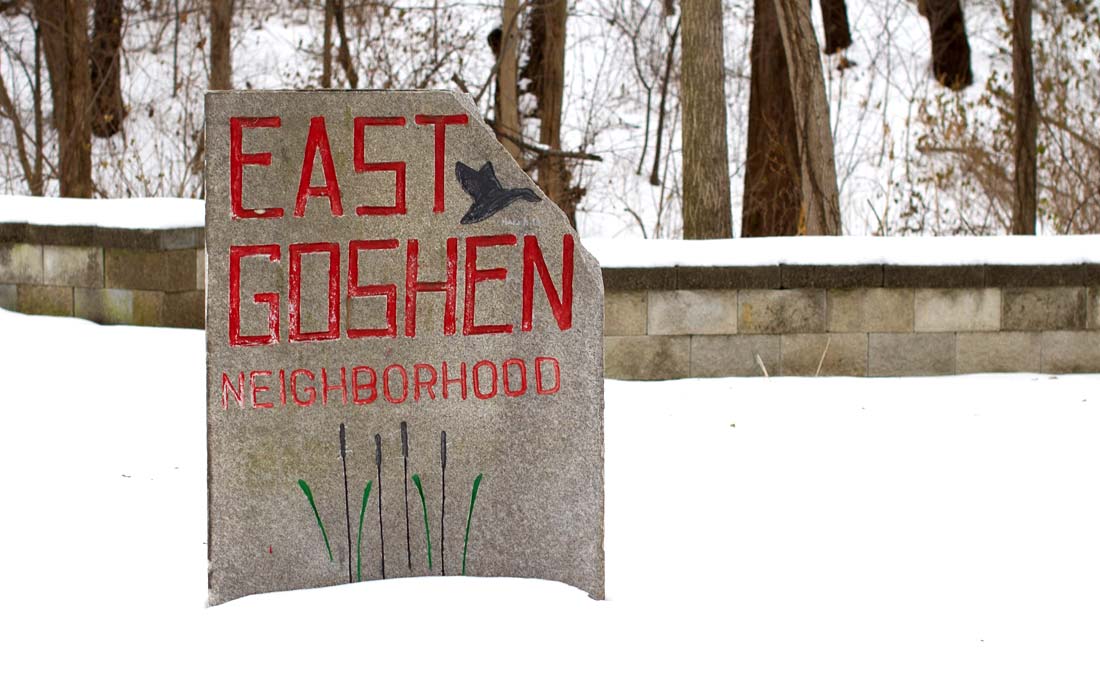 - The East Goshen Neighborhood Association was formed to “offer neighbors a voice, and to promote the neighbor-helping-neighbor way of living that has been present in our community throughout its history.”