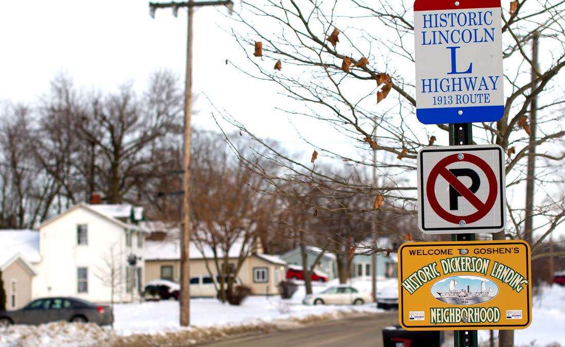 - The neighborhood was also home to a lumber mill, saw mill, and most of the town’s carpenters. It is said that this neighborhood “built Goshen,” as many of the structures in downtown Goshen were built with materials manufactured in Dickerson Landing.