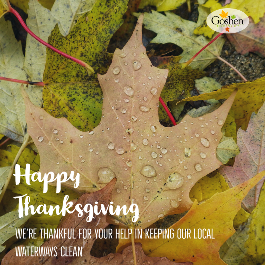 If you have concerns about stormwater drainage or water quality issues or have any questions or comments, please do not hesitate to contact the Goshen Stormwater Department at stormwater@goshencity.com or 574-534-2201.