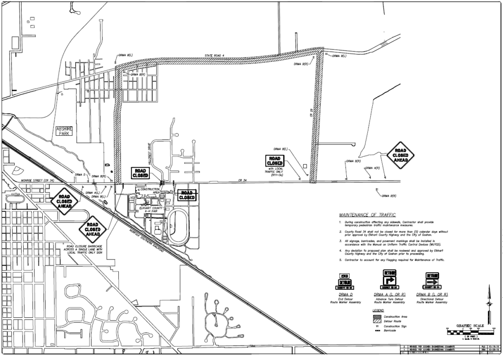 The Elkhart County Fairgrounds and contractor Beer and Slabaugh will be extending a water main across Monroe Street by Gate 3 at the fairgrounds.