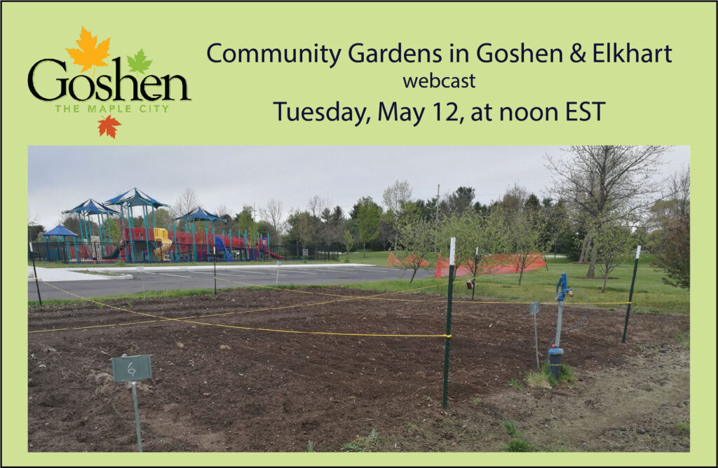 We will also be talking to the Goshen Parks Department Superintendent, Tanya Heyde, and the City of Elkhart Environmental Center Director Jamison Czarnecki to learn what community garden plots and resources are available for family gardening in Goshen and Elkhart.