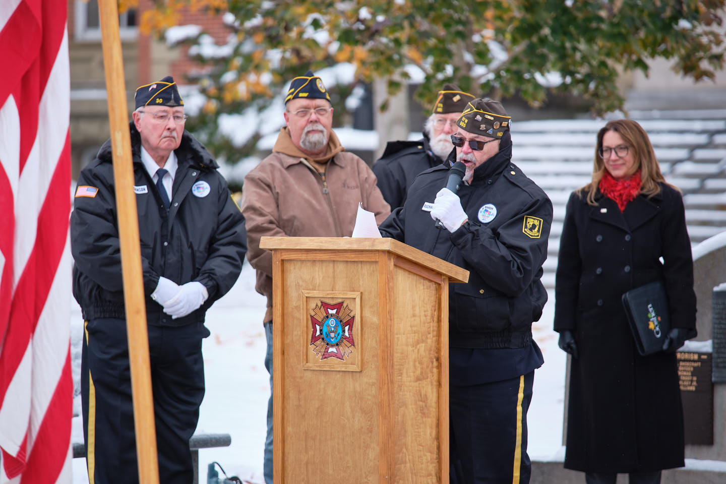 Leichty said veterans are not distant figures from history. “They are our neighbors, our colleagues, family members and friends,” she said. She thanked them for mentoring youth, volunteering, and bringing the same discipline that defined their service into civic life.