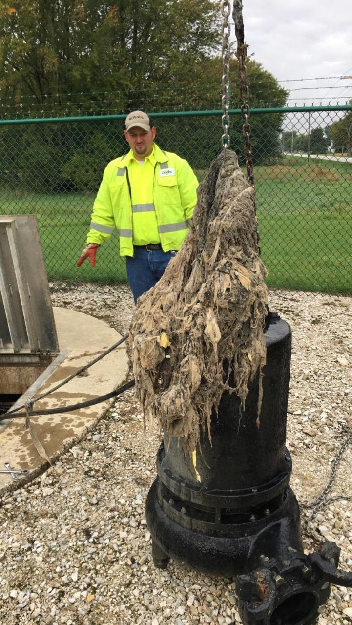 In the wastewater industry, flushable wipes and other materials that don’t follow the 3P rule (only Pee, Poop, toilet Paper go down the drain), are a real problem not only nationwide, but also here in Goshen.
