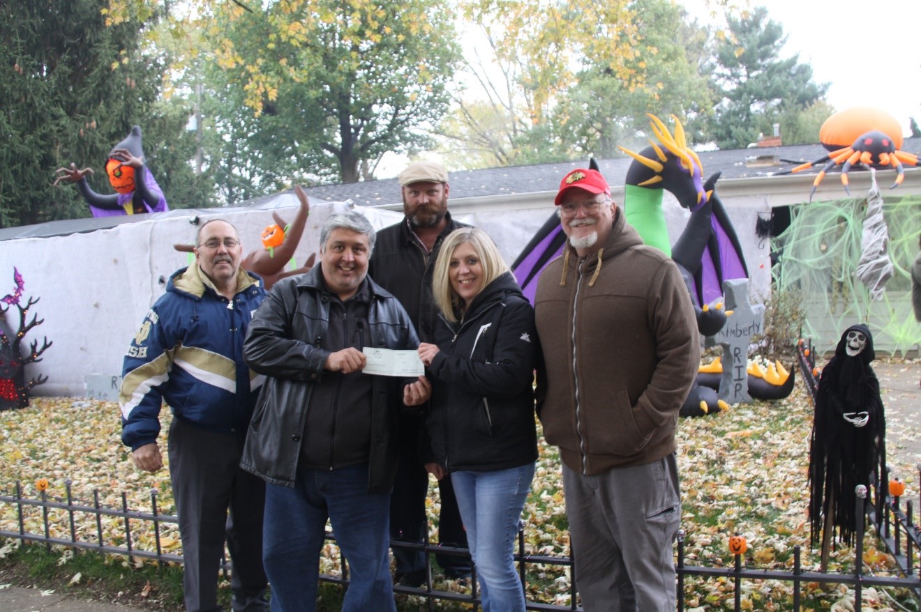 Board members of the West Goshen Neighborhood Association met at the Crest Acres Haunted House Halloween Night and were presented with a check for a Neighborhood Association Mini-Grant.
