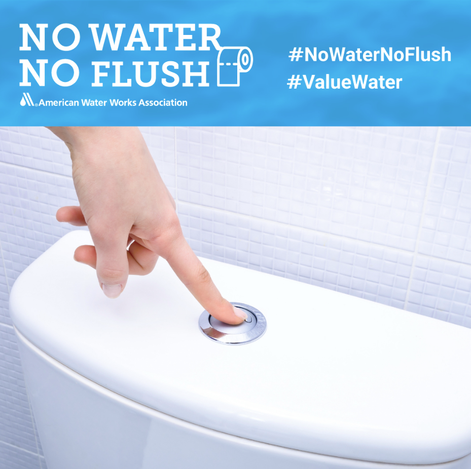No Water No Flush: Our water shields us from germs. If we didn’t have our precious water supply and water systems, we couldn’t protect ourselves and our families from sanitation-related illnesses and diseases.